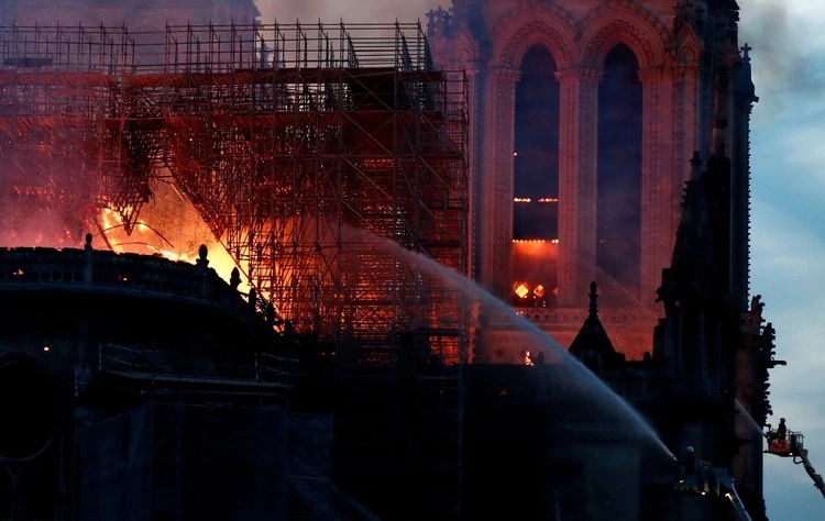 Al caer la noche, los bomberos luchaban contra el fuego y había temores de un posible colapso de la emblemática catedral. Incluso el ministerio del Interior había reconocido que "no es seguro" que se pueda salvar la catedral. "No estamos seguros de poder frenar la propagación en la torre norte. Si esta se derrumba los dejo imaginar la magnitud de los daños", indicó el secretario de Estado del Interior Laurent Nuñez.