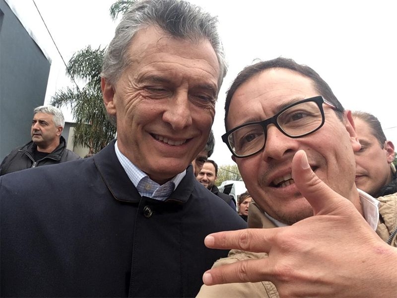 Ocurrió el marco de la visita presidencial de Marcri a Venado Tuerto. Durante el recorrido por la ciudad, un hincha de River logró colarse entre la seguridad y le pidió una foto, a lo que el Presidente accedió. Sin embargo, al momento de capturar la imagen, la persona en cuestión extendió tres de los cinco dedos de su mano izquierda haciendo referencia al 3-1 sobre Boca en la final de la Libertadores que se disputó el pasado diciembre en Madrid. Fuente: Olé.