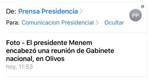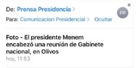 Aunque duró unos minutos, quedó registrado y se volvió viral. En un comunicado de Presidencia, se anunció que el "presidente Menem encabezó una reunión de Gabinete nacional en Olivos". Este error causó confusión en las redacciones y desató una andanada de mensajes en las redes sociales.