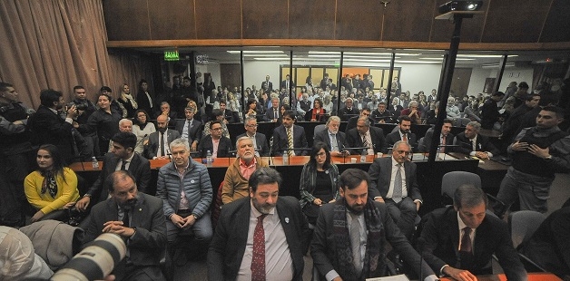 El primer juicio a la exmandataria se inició con la lectura de las acusaciones en la Sala AMIA, la más amplia del edificio judicial de Comodoro Py 2002, y según fuentes judiciales ese trámite puede demandar más de tres jornadas, en las que todos los acusados tendrán la obligación de estar presentes.