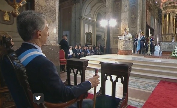 La celebración comenzará a las 10 presidida por el cardenal Mario Poli. El mandatario recibió en la Casa Rosada el saludo de los integrantes del gabinete nacional, los titulares de las Fuerzas Armadas y de Seguridad y partió caminando hacia la catedral en medio de un fuerte operativo de seguridad.