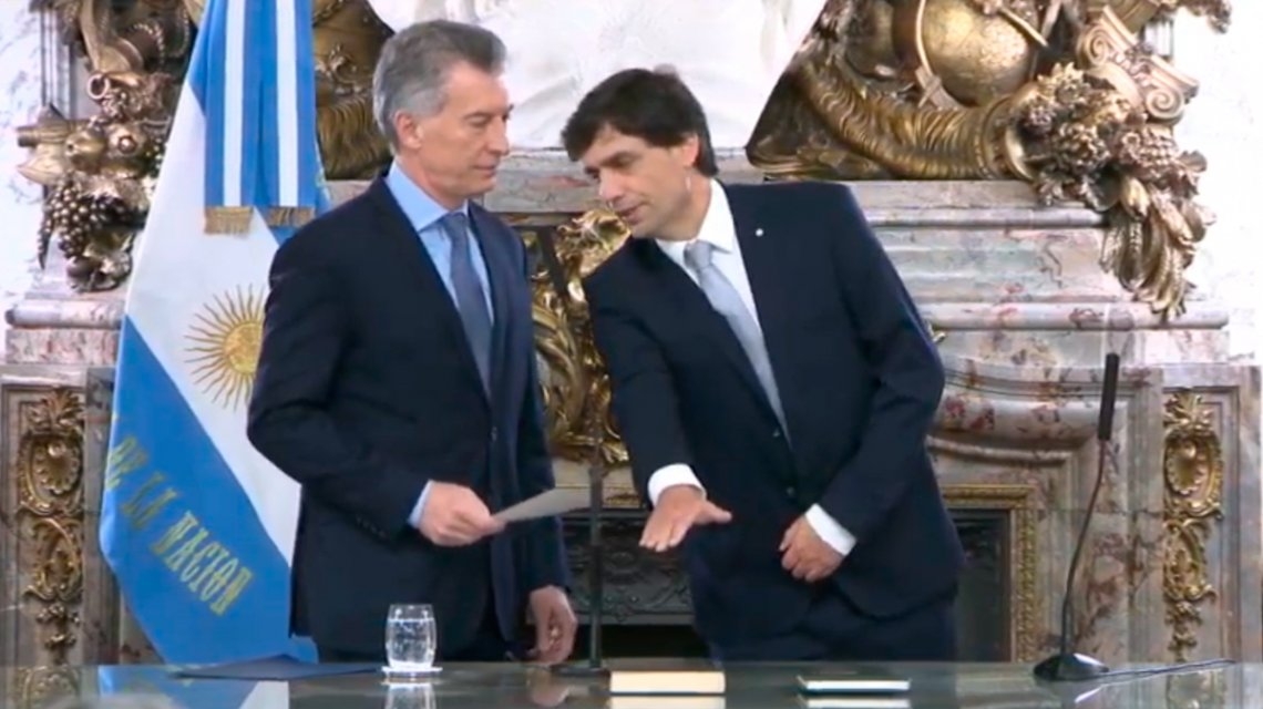 El presidente Mauricio Macri le tomó juramento al flamante funcionario a las 08:36 en el Salón Blanco de la Casa Rosada, que estuvo colmado por funcionarios nacionales y contó con la presencia de la gobernadora bonaerense María Eugenia Vidal.