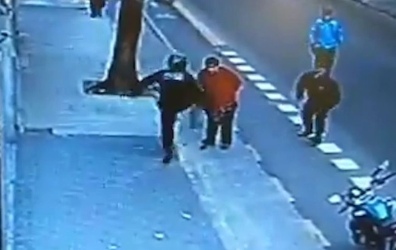 En el video se ve que cuatro policías porteños lo rodeaban, cuando uno de ellos, Esteban Armando Ramírez –con rango de oficial inspector y más de 20 años como policía- tras lo que parece ser un breve intercambio de palabras, le da una patada en el pecho.