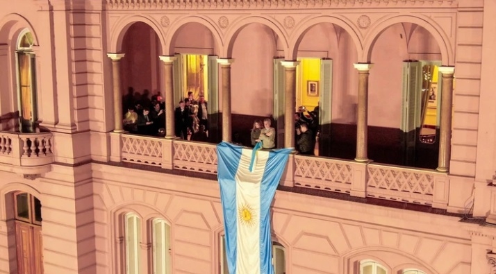 Además, del balcón en donde se mostró el mandatario ante la multitud, colgaron una enorme bandera argentina, mientras se escuchaban más gritos a favor del Gobierno. El jefe de Estado, después de las 19, saludó a la gente, agitó su puño y besó una pequeña bandera. La Primera Dama, por su parte, también envió sus saludos a los asistentes y aplaudió.