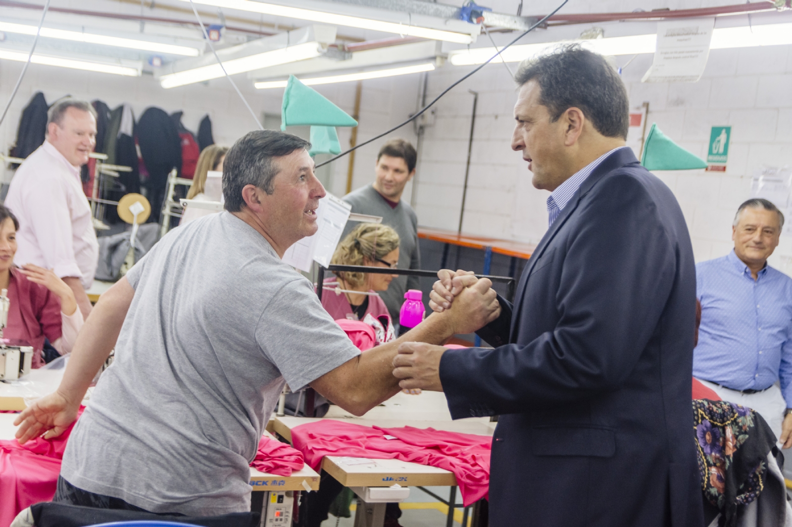 “La apertura indiscriminada de importaciones, la presión impositiva, la falta de crédito y una tasa de interés exorbitante destruyeron el tejido social de Argentina. Las Flores, uno de los pueblos textiles más grandes también es víctima de esto”, sostuvo Massa al recorrer fábrica textil Wilder, en el parque industrial de Las Flores.