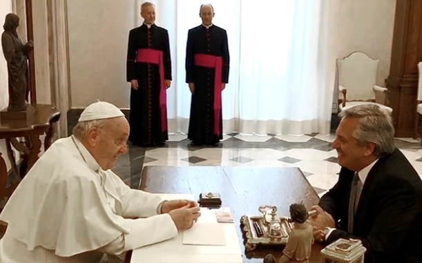 “Santo Padre, qué gusto verlo”. “Bienvenido”. Alberto Fernández se reunió a solas con el papa Francisco en el Vaticano. El encuentro duró 44 minutos. El Presidente había adelantado que la despenalización del aborto no sería un tema central, opinó que el Papa está más allá de la puja política entre peronistas y antiperonistas, y apagó un insignificante chisporroteo diplomático enviando a la Nunciatura Apostólica la nominación de María Fernanda Silva como embajadora argentina ante la Santa Sede.