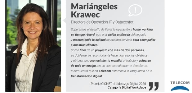 Todos los años CIONET Iberoamérica presenta sus Premios al Liderazgo Digital, que en 2020 fue para destinado a Telecom por su proceso de implementación de home working, que permitió la continuidad operativa de la compañía durante estos últimos meses.
