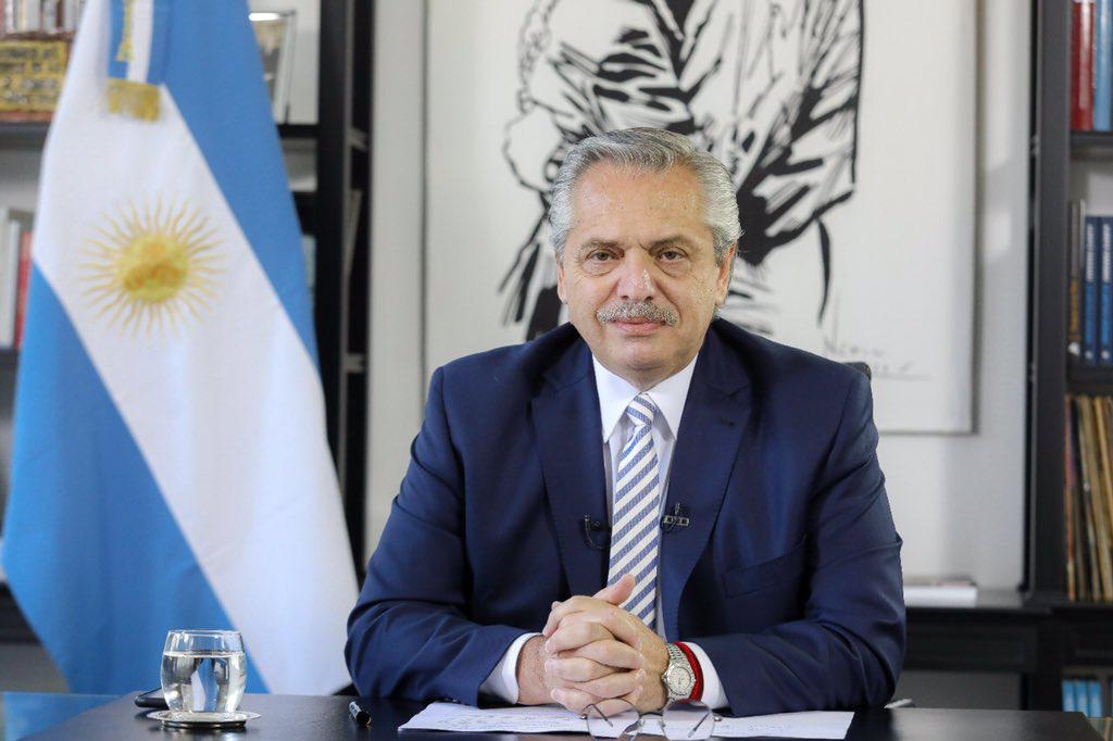 El mandatario estuvo acompañado por el gobernador de Buenos Aires, Axel Kicillof, y un grupo de ministros y funcionarios, en tanto que los gobernadores del resto de las provincias beneficiadas participaron virtualmente.