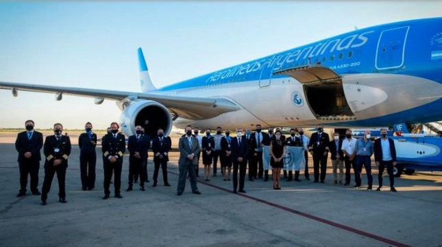 El Airbus 330-200 de Aerolíneas Argentinas, que en los últimos días fue acondicionado especialmente para poder transportar las dosis de la vacuna Sputnik V, despegó del Aeropuerto de Ezeiza con destino a Moscú, Rusia, donde cargará las primeras 300 mil dosis de la vacuna desarrollada por ese país.