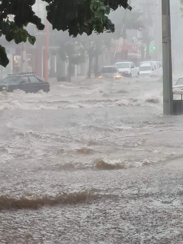 En este momento, varias calles de la ciudad se encuentran anegadas, tal es el caso de la zona del Cu-Cú. Varios conductores se vieron obligados a estacionar sobre la vereda, porque se hizo imposible poder avanzar.