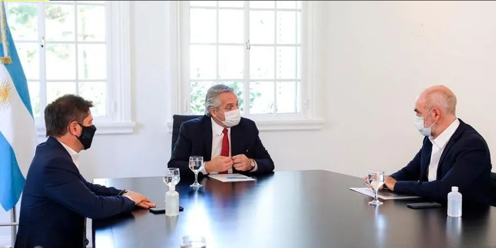 En este sentido el Presidente mantuvo el miércoles una reunión con el gobernador bonaerense Axel Kicillof y con el jefe de Gobierno porteño, Horacio Rodríguez Larreta, en la Quinta Presidencial de Olivos.