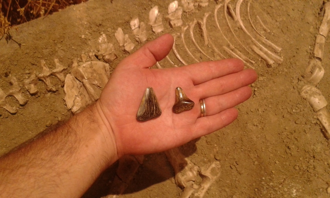 Posteriormente, Sergio Bogan (Fundación Azara y Universidad Maimonides) consulto la colección fósiles de esta institución y observo estos dientes, identificándolos de inmediato como los de un Carcharodon carcharias, popularmente conocido como tiburón blanco. “Si bien presentan erosión se trata de dos excelentes piezas fósiles, uno de ellos de la mandíbula superior y el otro de la inferior”, sostuvo Sergio Bogan, y agrego “Se trata de los primeros restos fósiles de esta especie descubiertos en este sector de la costa bonarense”, “El tiburón blanco en la actualidad es sumamente inusual en nuestras costas … y este hallazgo refuerza el modelo paleontológico previamente propuesto, donde la especie era mucho más abundante en el pasado reciente de nuestro mar”.