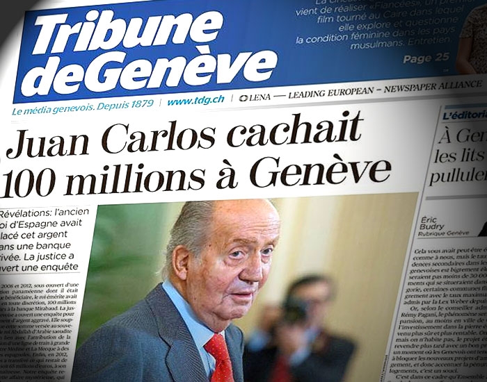 Según el diario suizo “La Tribune de Geneve”, el rey “Juan Carlos I escondía 100 millones en Ginebra”, remarcando que “se cierra el cerco sobre la fortuna secreta del ex monarca español en Suiza”.