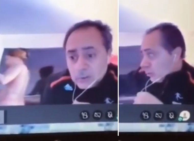Al parecer, el educador se ubicaba con su computadora en el dormitorio y su pareja no se percató que dictaba una clase virtual.