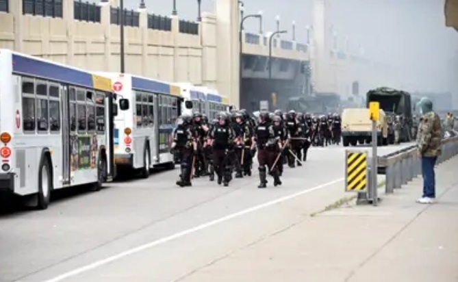 Un hombre enfrenta a la Guardia Nacional durante una protesta por la muerte de George Floyd, ocurrida el lunes, a manos de la policía en Minneapolis, Minnesota REUTERS/Carlos Barria