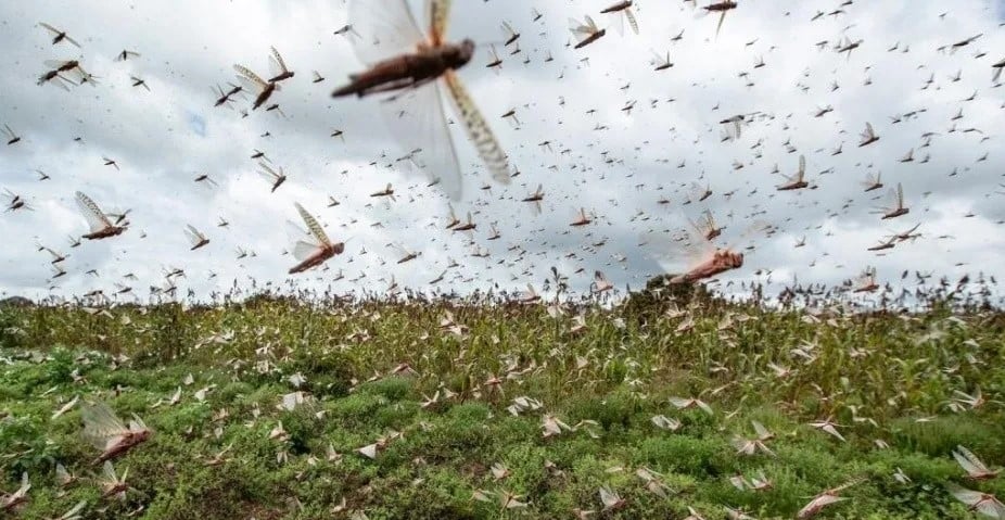 Se trata de la especie " Langostas del desierto" que pueden desplazarse hasta a 150 kilómetros en un día y que, si bien es una plaga rural, se convierte en urbana llegando a pueblos y ciudades.