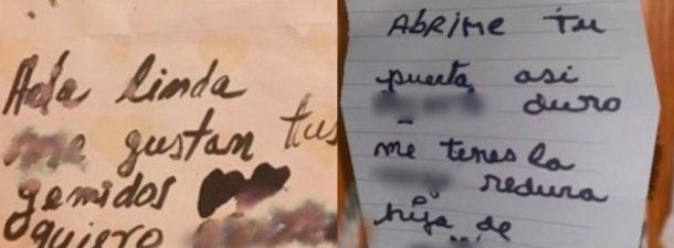Según la denuncia de las chicas, todo empezó hace una semana, cuando el acosador entró sin forzar la puerta a la casa de las víctimas, que se mudaron recientemente al edificio. Una vez adentro, escribió en unos individuales de mesa que las iba a violar.