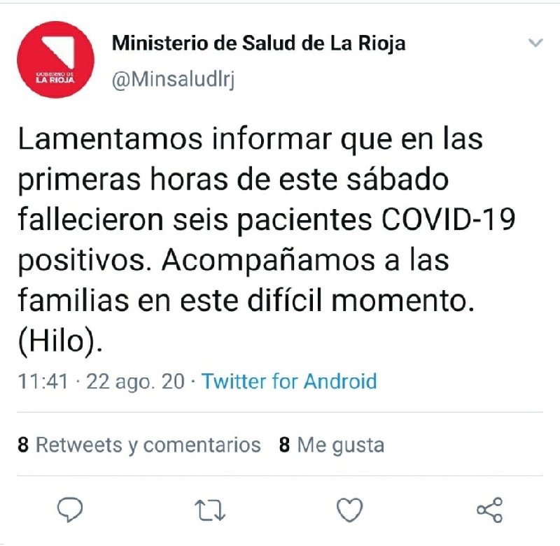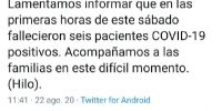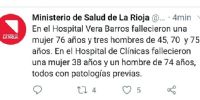Mientras, en el Hospital de Clínicas o Universitario, también de la Capital riojana. fallecieron una mujer 38 años (esta era la paciente oriunda de Chamical) y un hombre de 74 años, todos con patologías previas.