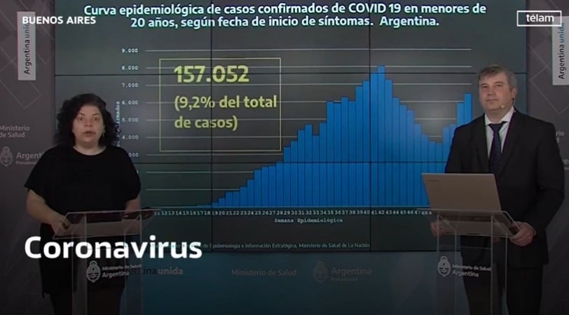 "Cuando vemos la curva epidemiológica en menores de 20 años en Argentina tiene la misma movilidad que la curva de la población en general, con un aumento sostenido del número de casos a partir de la semana 51 de 2020", describió Vizzotti.