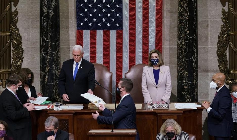 El vicepresidente republicano Mike Pence certificó el voto de 306 grandes electores a favor del candidato demócrata, frente a los 232 logrados por Trump.