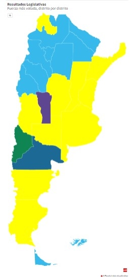 El "mapa electoral" que dejaron las elecciones Legislativas celebradas este domingo demuestra una recuperación del oficialismo y un retroceso del macrismo en algunas provincias que dejaron de ser "amarillas".
