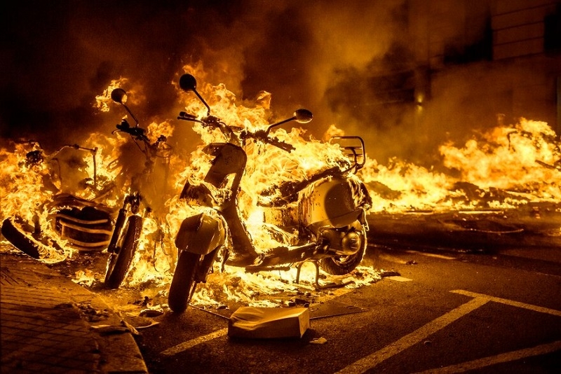 En Barcelona también hubo incidentes con personas que lanzaron objetos contra los oficiales y levantaron barricadas con contenedores de basura prendidos en fuego. La policía catalana, los Mossos d’Esquadra, respondió con cargas y disparando balas de goma para dispersar a la gente.