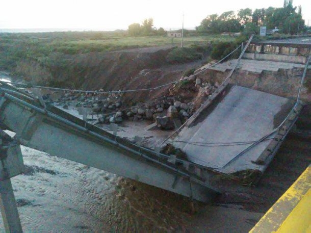 "No ha habido ningún tipo de accidente, salvo el puente", dijo el director de Defensa Civil, Daniel Burrieza al diario MDZ y destacó que "la marca sobrepasa los dos metros, lo cual voló las defensas de las bases de las pilas que mantienen los puentes".