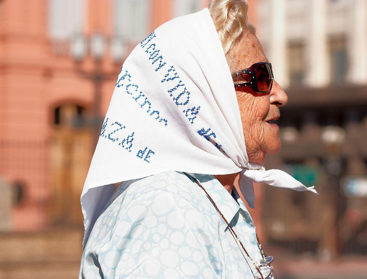 Una vez contó que la primera vez que fue a la Plaza de Mayo, para sumarse a las protestas de las mujeres que reclamaban por la aparición de sus hijos, compró "un pañuelo de los que se usan para bailar", se lo puso en la cabeza y se sentó en un banco.