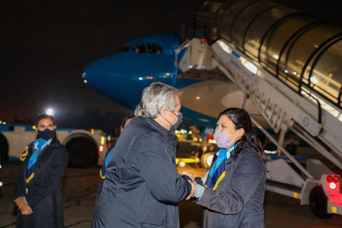 La comitiva que acompaña al Presidente estará conformada por la primera dama, Fabiola Yañez; el canciller Felipe Solá; el ministro de Economía, Martín Guzmán; el secretario General de la Presidencia, Julio Vitobello; el secretario de Asuntos Estratégicos, Gustavo Beliz, y el secretario de Comunicación y Prensa, Juan Pablo Biondi.