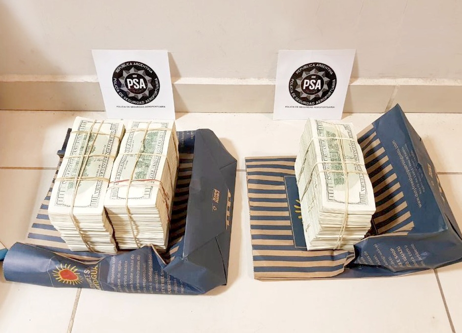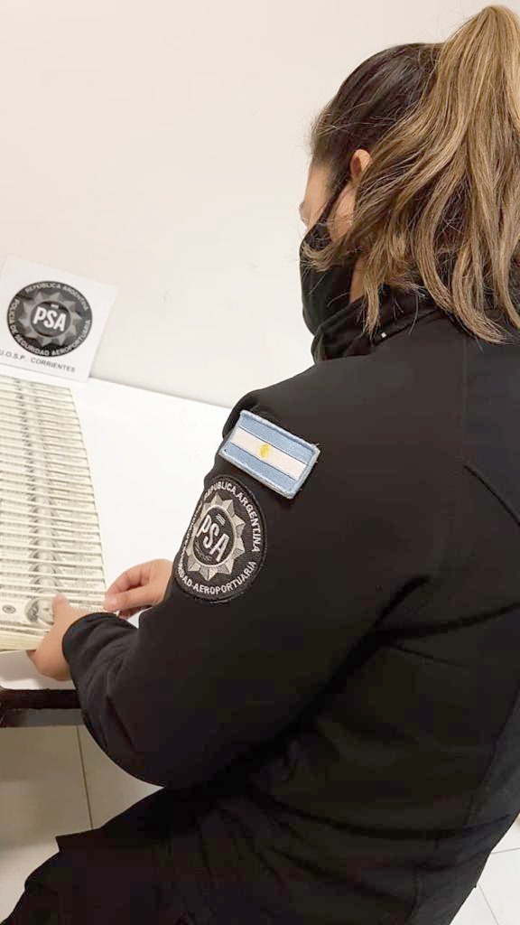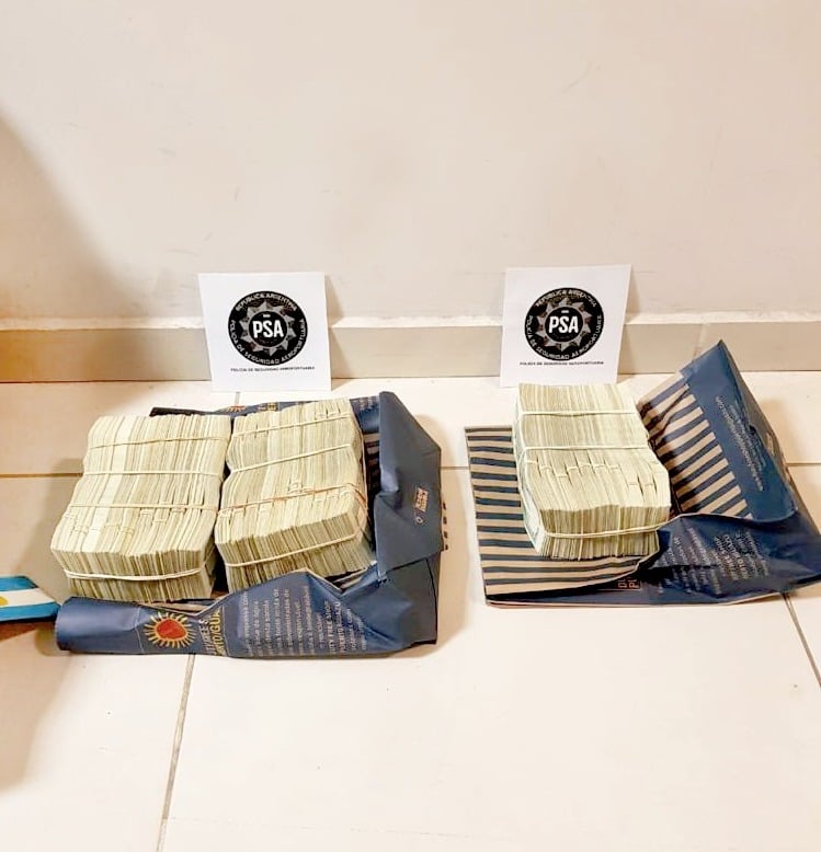 A través de los escáneres de rayos X, los efectivos observaron elementos orgánicos en una valija por lo cual solicitaron a la dueña que exhibiera el contenido, hallando en su interior gran cantidad de dólares. La mujer no pudo justificar su tenencia y por orden de la judicatura se realizó el secuestro preventivo del dinero por supuesto delito contra el orden económico.