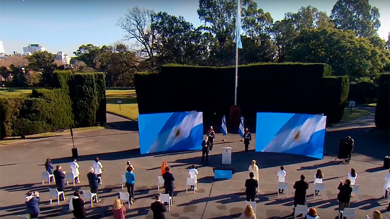 En este sentido, el Presidente afirmó que la bandera "es el símbolo central de la Patria" y que representa "tres ideales: la libertad, la igualdad y la solidaridad" que, en tiempos de pandemia de coronavirus, "tiene un valor enorme".