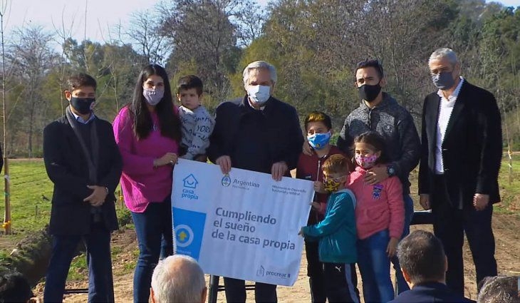 Alberto Fernández anunció este martes en la ciudad bonaerense de Mercedes la puesta en marcha de obras de infraestructura para generar 30.000 lotes con servicios y la entrega de 11.800 créditos para la construcción de la primera casa en esos espacios para familias de todo el país, con una inversión total de 77.200 millones de pesos por parte del Gobierno.