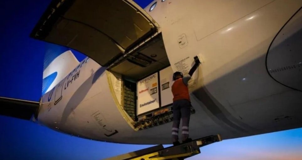 El vuelo LCO1101, de la empresa LATAM Cargo Colombia, con 733.000 dosis de AstraZeneca en sus bodegas, aterrizó en el aeropuerto internacional de Ezeiza a las 5.07 de este lunes.