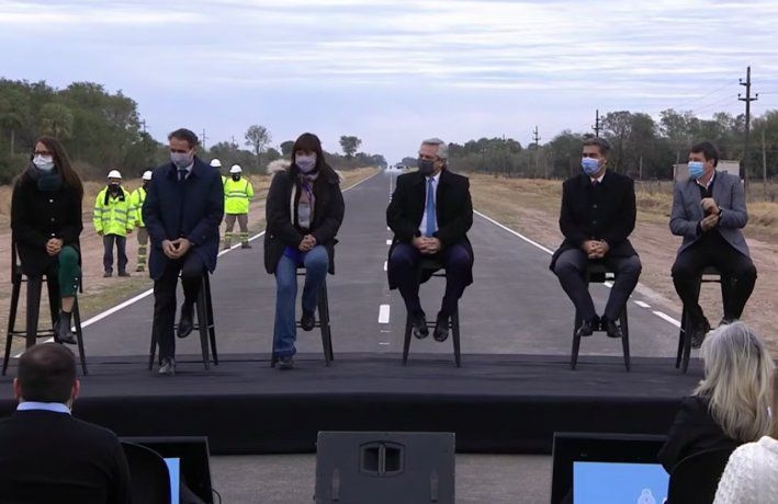 Acompañado por el ministro del Interior, Eduardo de Pedro, el de Obras Públicas, Gabriel Katopodis, el de Desarrollo Social, Daniel Arroyo, la ministra de Mujeres, Géneros y Diversidad, Elizabeth Gómez Alcorta, y el gobernador Jorge Capitanich, Fernández dejó inaugurado un tramo de 40 kilómetros de la RP 7, entre Presidencia de la Plaza y Colonias Unidas, en el noreste chaqueño.