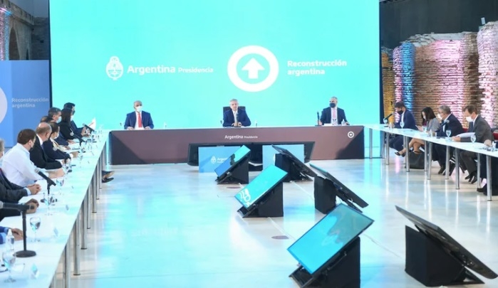Los escuchaban atentos, sentados en dos largas mesas, 15 gobernadores del oficialismo y 10 vicegobernadores o ministros de Economía, enviados tanto por gobiernos aliados del Frente de Todos como por opositores. Para la reunión estaba previsto que cada uno de los jefes provinciales y funcionarios del interior pudieran hacer intervenciones y consultas. Le tocó hablar primero al jefe provincial de Santa Fe, Omar Perotti, que sin hacer consultas o manifestar dudas, brindó su apoyo explícito al Gobierno.