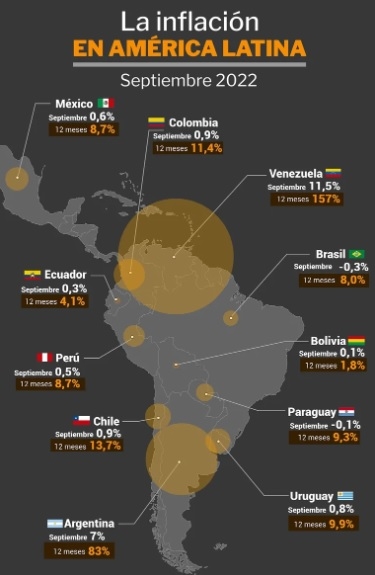 Varios países de la región han tenido incluso deflación el mes pasado, como los casos de Paraguay y Brasil y la Argentina quedó segunda después de Venezuela en términos de suba de precios. Esto expone mucho más todavía la problemática argentina, dado que una parte del Gobierno le echó la culpa en el arranque del 2022 a la escalada de precios por la guerra entre Rusia y Ucrania.