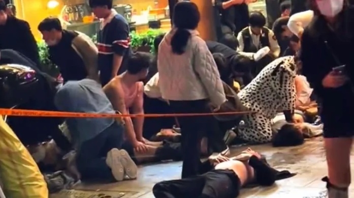 Las autoridades surcoreanas dijeron que los 50 heridos de gravedad sufrieron un paro cardíaco y se teme que varias hayan muerto después la estampida por la gran multitud que avanzaba en una calle estrecha.