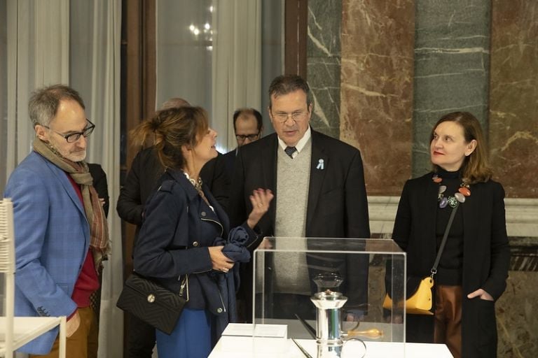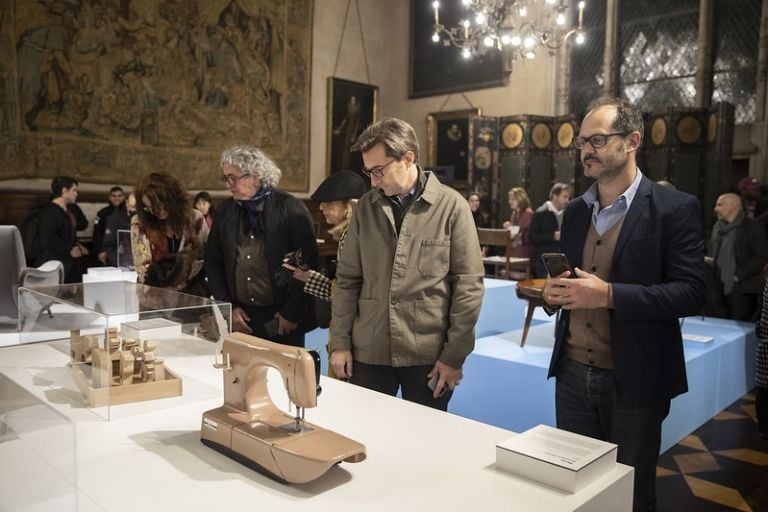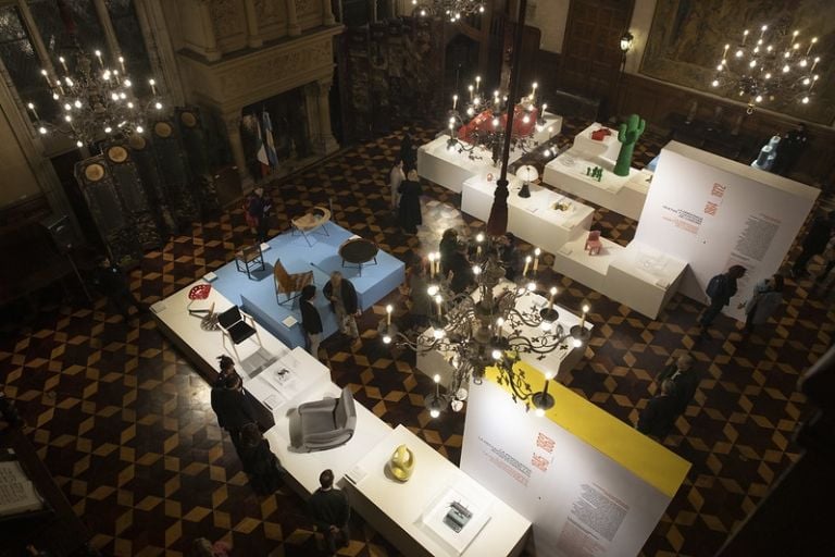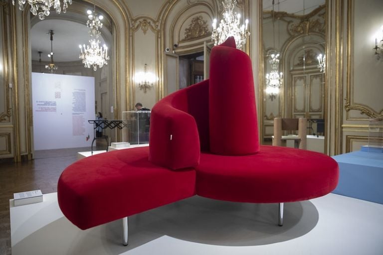 Una particularidad de esta exposición de diseño es la coexistencia con pinturas, tapices, estatuas, mobiliario y demás objetos del propio palacio, que se ubican como abrazando esta muestra de 58 objetos de diseño italiano y 20 piezas argentinas pertenecientes al acervo del Museo de Arte Moderno de Buenos Aires, en una suerte de diálogo ampliado.