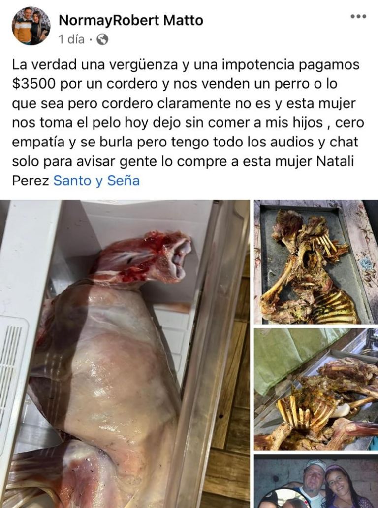 "La verdad una vergüenza y una impotencia, pagamos $3500 por un cordero y nos venden un perro", así comenzaba la publicación de la mujer para alarmar a demás personas de no comprar en el mismo lugar.