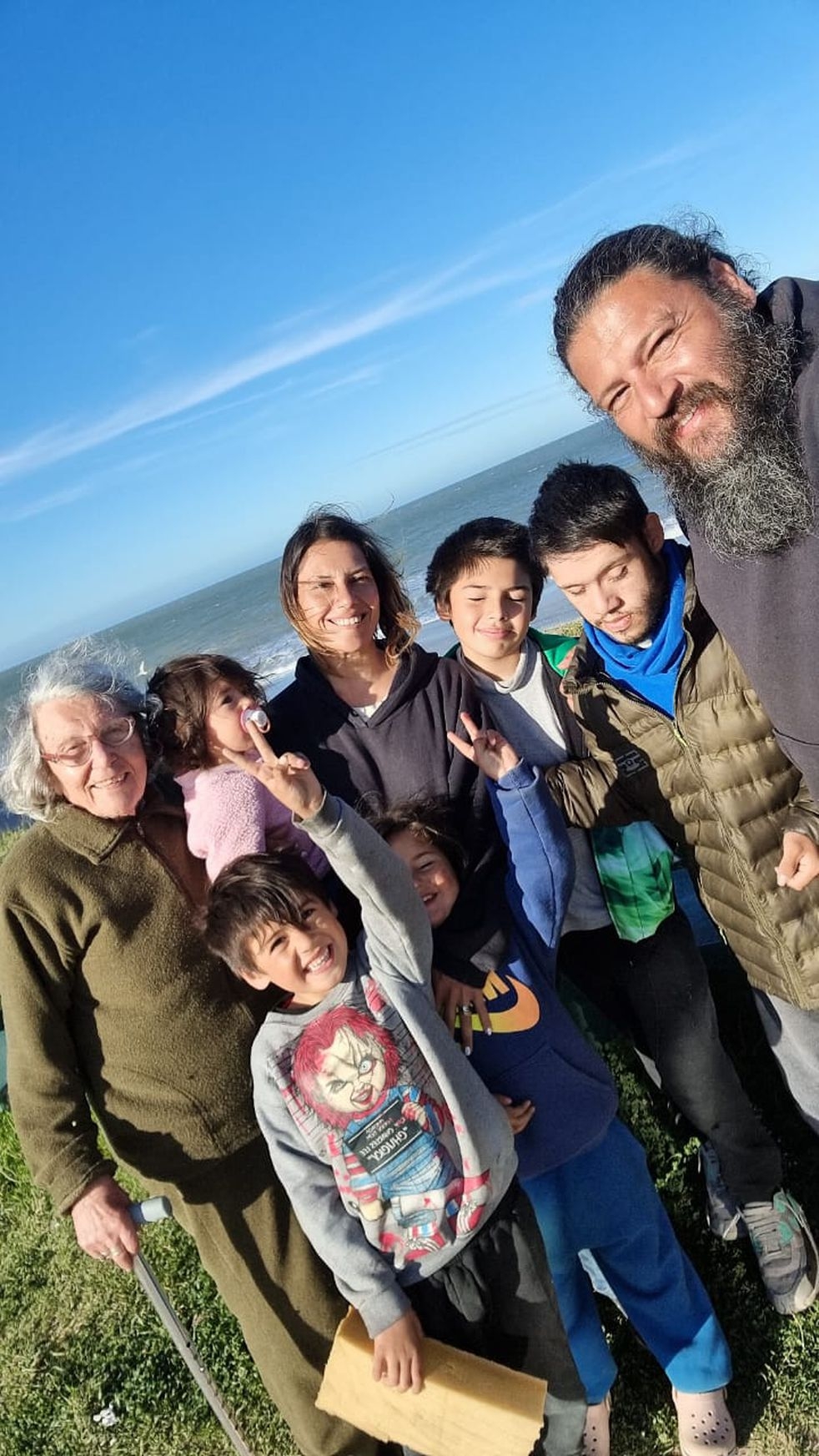 Los primeros pasajeros confirmados fueron Martín y Teté. Se sumaron sus hijos: Pablo (24), Juan Martín (12), Diogo (7) e Indra (5). En el camino se sumó Rona (1 ½). Pero el viajero más importante es la abuela Miryam de 88 años.
