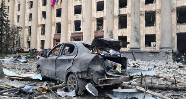 "Esta mañana la plaza central de nuestra ciudad y la sede del gobierno local de Járkov fue atacada de una forma criminal", indicó Sinegubov en Telegram.