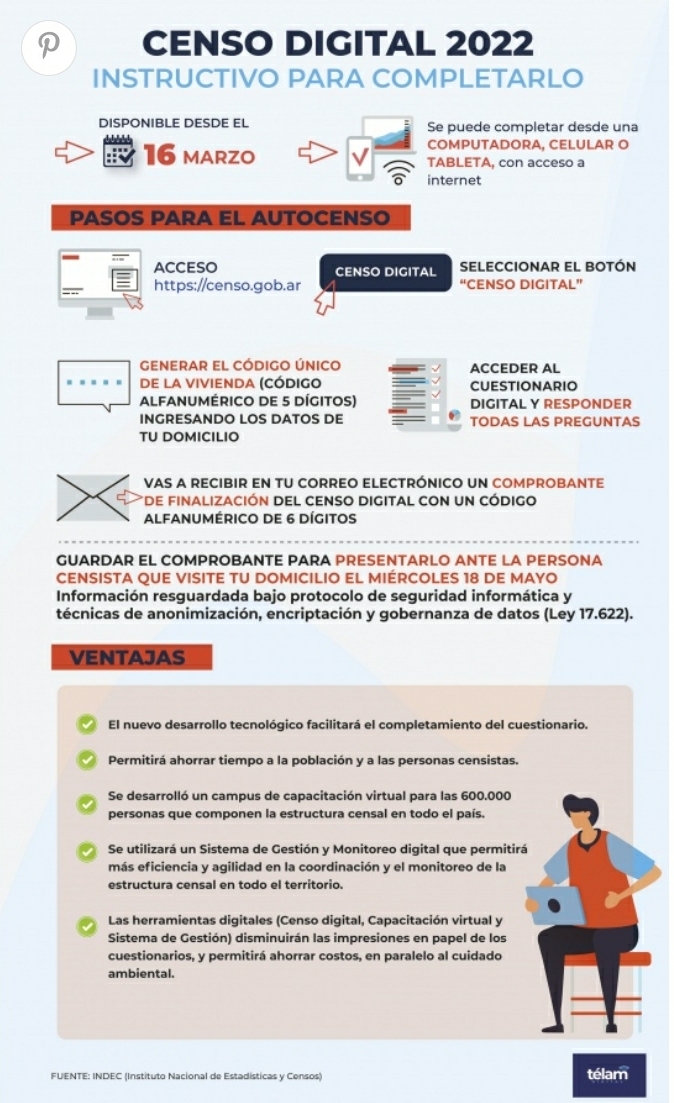 Desde este miércoles, se podrá acceder al cuestionario digital a través de un móvil, computadora u otro tipo de dispositivo electrónico y el comprobante de realización deberá mostrarse al censista que concurra al domicilio el 18 de mayo, cuando se realice el registro estadístico de modo presencial en simultáneo en todo el país.