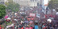 En tanto, el espacio Encuentro Memoria, Verdad y Justicia -que integran más de 200 organizaciones de derechos humanos, sociales, estudiantiles, de trabajadores y de la izquierda política- se concentra desde media mañana en el Obelisco y comenzó a ingresar a la Plaza a partir del mediodía en tres columnas -por la avenida de Mayo y las diagonales Norte y Sur-, con el agregado de la consigna "No al acuerdo gobierno-FMI".