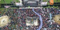 "Veo a ustedes que tienen ese sentimiento también de justicia, de dignidad para el pueblo, de igualdad y compañerismo y me emociona enormemente y pienso en nuestros 30 mil detenidos y desaparecidos", dijo la referente de Madres de Plaza de Mayo Línea Fundadora Nora Cortiñas ante miles de personas.