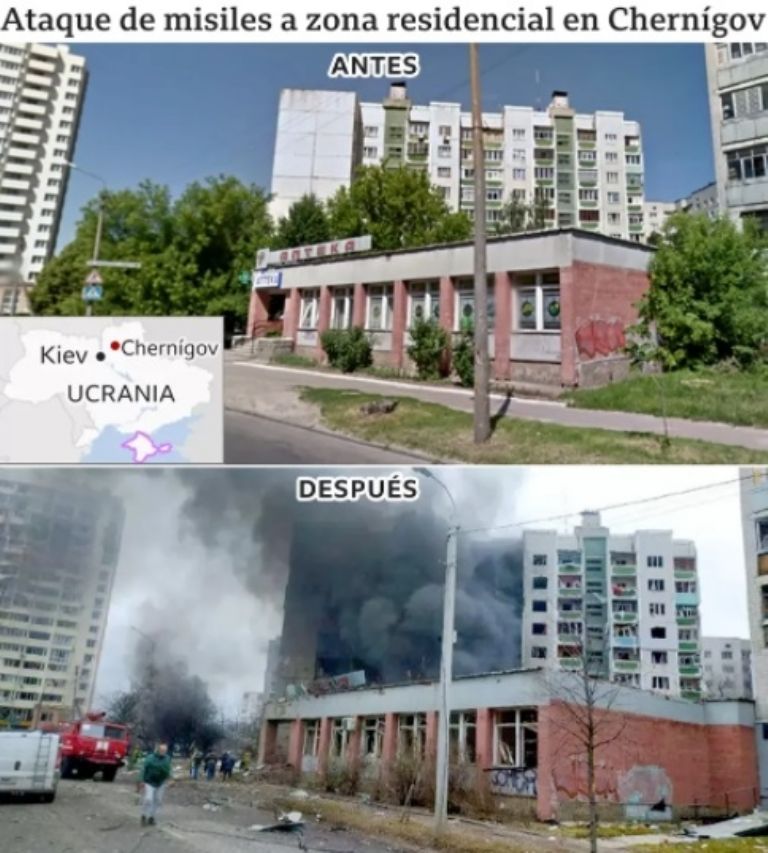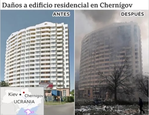 Los ataques con misiles rusos devastaron ciudades, pueblos y aldeas en toda Ucrania. Estas imágenes del antes y el después muestran parte de la destrucción causada en áreas civiles por la invasión rusa, que comenzó el jueves de la semana pasada.