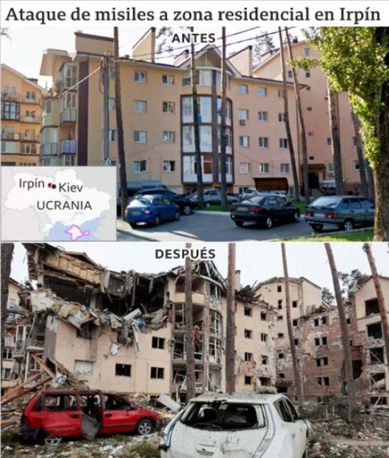 La pequeña ciudad de Irpín se encuentra tan solo 20 km al noroeste de Kiev, y se vio en la línea del frente entre las fuerzas rusas y ucranianas durante la última semana.