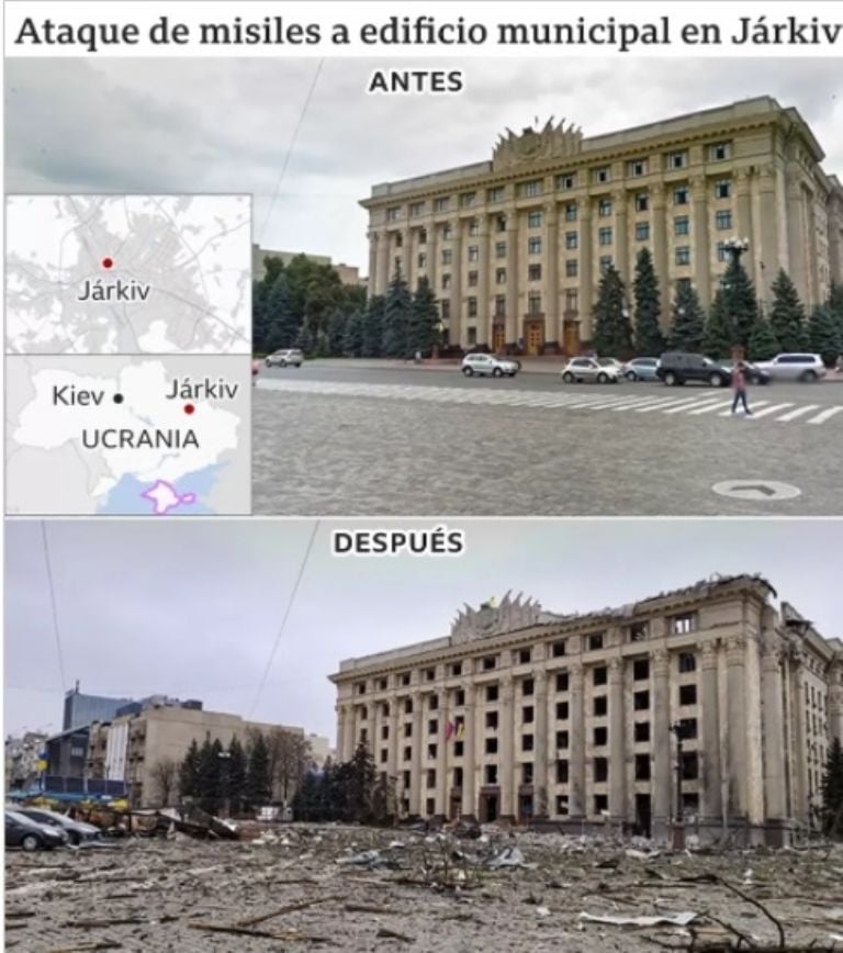 Járkiv, la segunda ciudad más grande de Ucrania, fue el foco de intensos bombardeos aéreos por parte de las tropas rusas durante varios días. El centro de la ciudad resultó gravemente dañado.