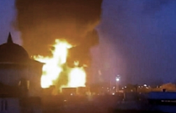 En otro mensaje, el gobernador indicó que los bomberos trabajaban para apagar el incendio y que dos empleados del depósito resultaron heridos.