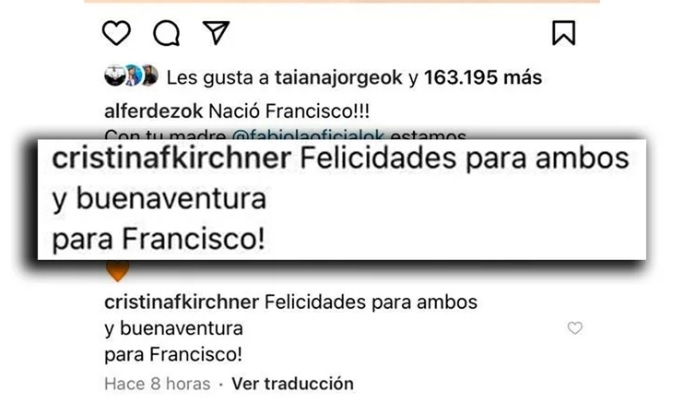 Además de la vicepresidenta, otros funcionarios y dirigentes políticos también saludaron y felicitaron a la pareja presidencial, entre ellos la secretaria de Legal y Técnica de la Presidencia, Vilma Ibarra; el ministro de Defensa, Jorge Taiana; el diputado Daniel Arroyo; y el ministro del Interior, Eduardo “Wado” De Pedro. “¡Bienvenido, Francisco! Y bienvenidos Alberto y Fabiola al mundo de los que dormimos poco pero queremos mucho. Les deseo muchas felicidades y lo mejor en esta nueva etapa de la familia”, señaló el dirigente de La Cámpora.