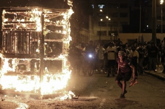 Los disturbios comenzaron en la tarde mientras Castillo sostenía una reunión con los líderes opositores que controlan el Congreso y cientos de personas protestaban en los alrededores del edificio legislativo y otros puntos de Lima.
